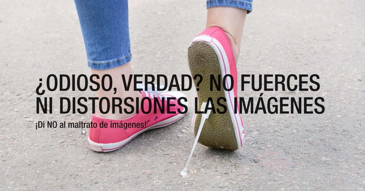Si concibiésemos cualquier imagen como un ‘ser vivo’ entenderíamos que cada vez que la deformamos, estiramos, achatamos, distorsionamos… está sufriendo una tortura. Se trata de que los cambios de tamaño –más pequeña, más grande o prepararla con otro formato– se hagan respetando su proporción entre ancho y alto para mantener su equilibrio natural. Por ejemplo, si para que se adapte al formato de una tienda online fuerzas la fotografía ‘hasta el infinito y más allá’, se producirá una ruptura con la realidad y el usuario ya no tendrá una referencia visual fidedigna de las proporciones del producto.