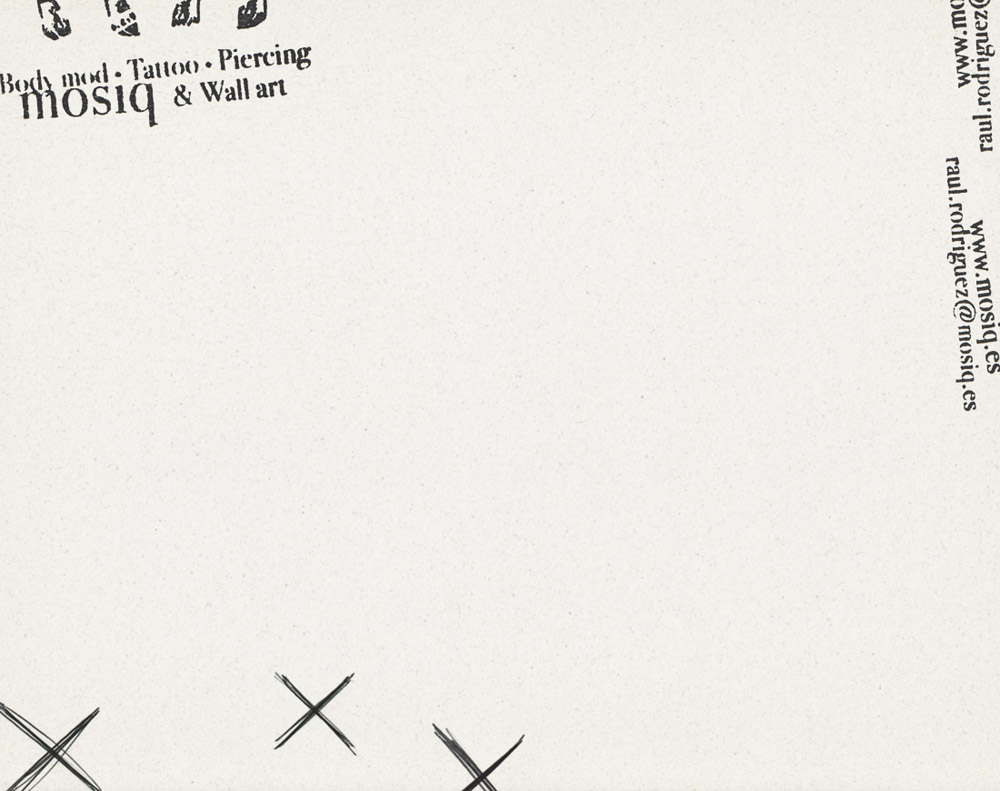 Una identidad poco común para un artista único en su especie. Esta imagen es un reflejo de su versatilidad, los cuatro brazos encarnan cada una de las disciplinas a las que se dedica. Todo queda recogido en una extraña letra «M» tintada de la misma materia…