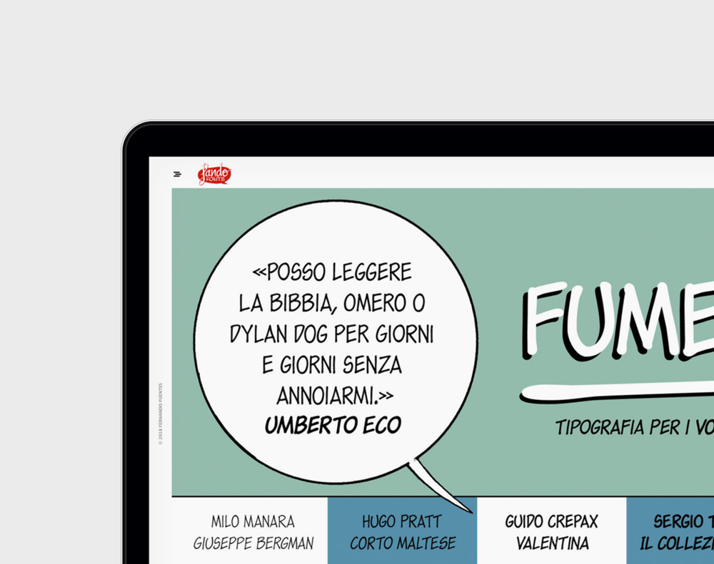 De forma limpia y estructurada, en esta web conviven diversos contenidos relacionados con el autor y sus creaciones. Al portfolio de trabajos destacados se suma una tienda online donde se pueden probar y comprar tipografías exclusivas diseñadas por Fando…